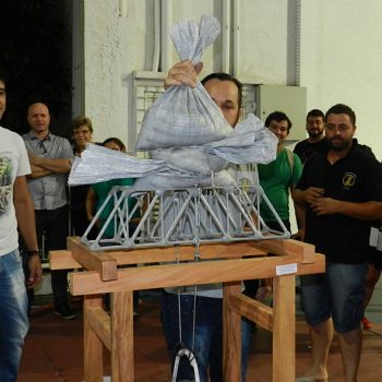 Das pontes que resistiram o peso, o grupo vencedor comemorou: conseguiu manter a estrutura sem avarias, apesar do peso ter ultrapassado os 56 quilos. “O desafio era suportar 40 quilos”, explica Casagrande. “Todos estão de parabéns pelo empenho na construção das pontes. O ensaio serviu como experiência para que possam entender a importância de calcular uma obra dentro dos padrões exigidos pela engenharia civil”, completa.